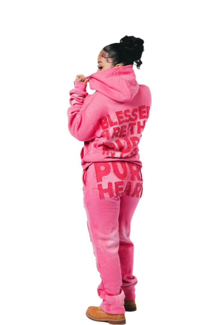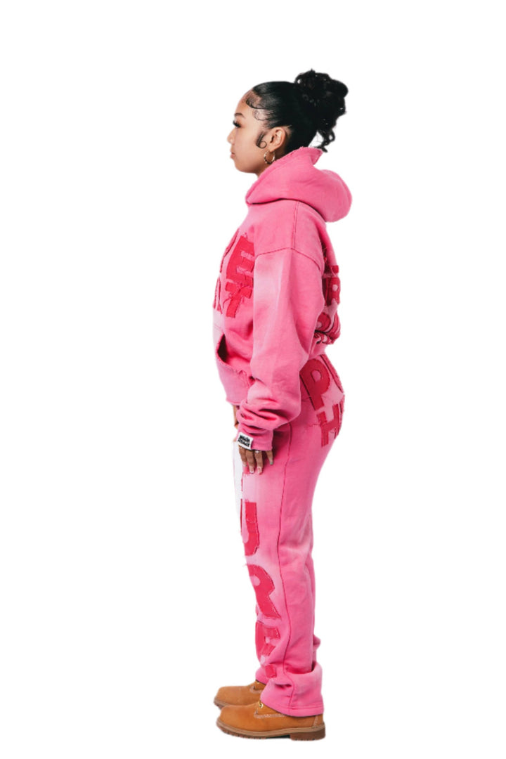 'Distressed' Sweatsuit Pink on Pink