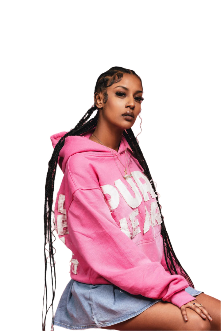 'Distressed' Hoodie Pink & White